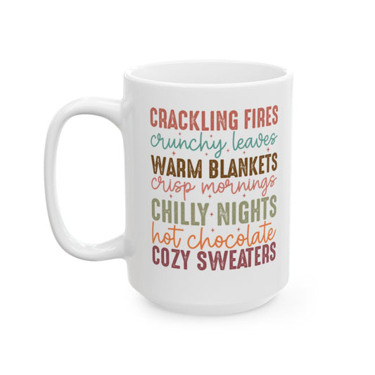 “Cozy Fall Vibes – Crackling Fires, Leaves & Hot Chocolate” Ceramic Mug, (11oz, 15oz)