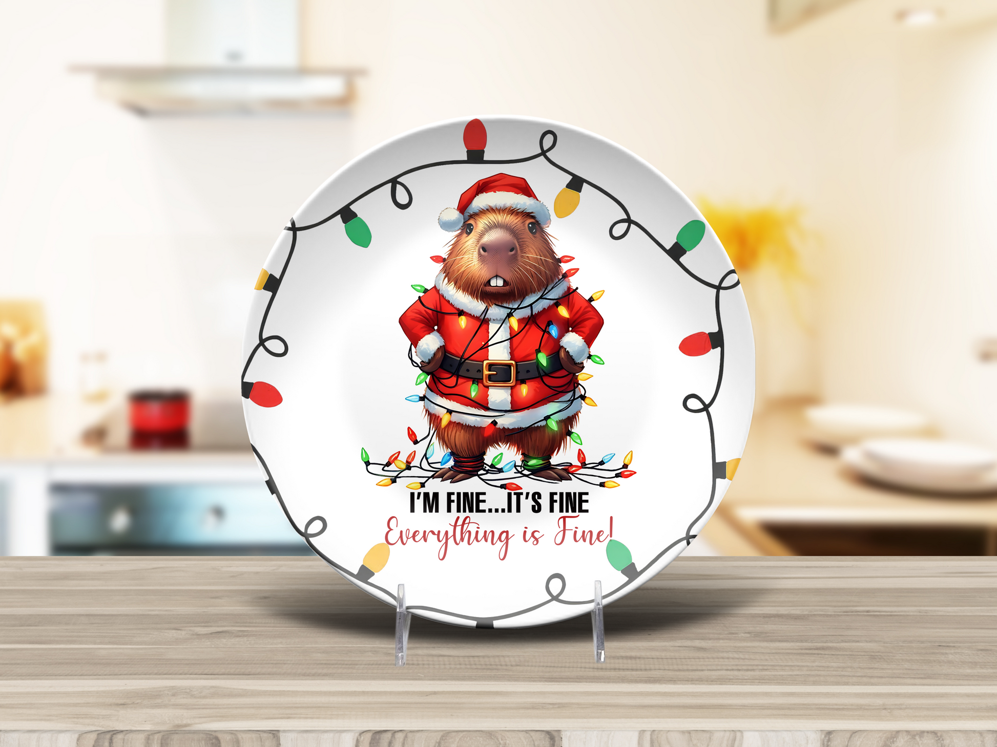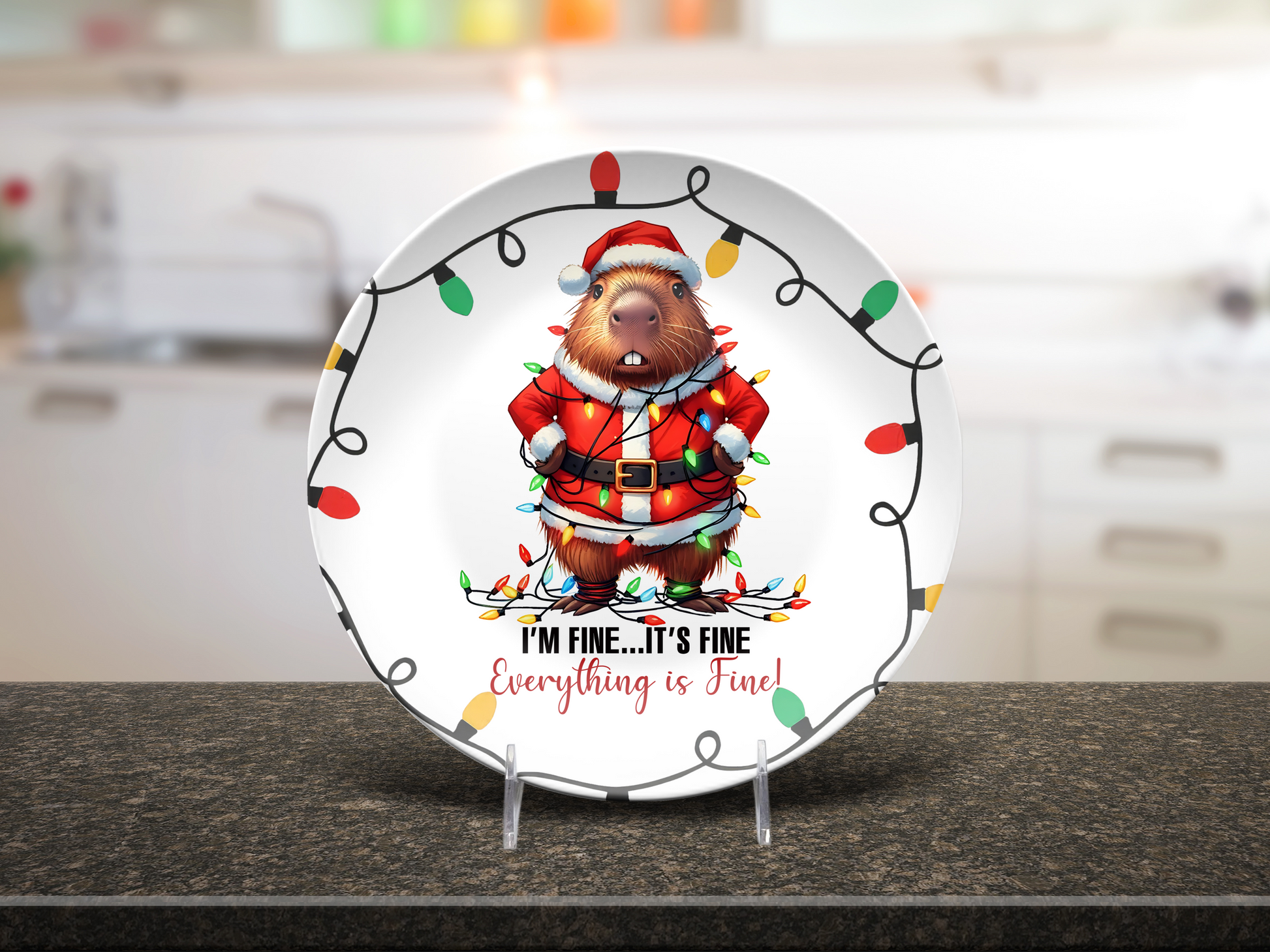 “It’s Fine, I’m Fine, Everything’s Fine” Capybara Christmas DecoPlate – Unbreakable 10" Holiday Dinner Plate