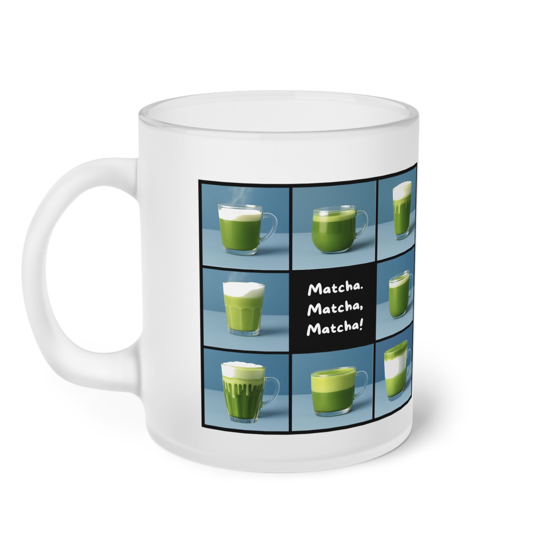 “Matcha, Matcha, Matcha” Frosted Glass Mug | Gen X Inspired Matcha Lover Gift – 11oz Dishwasher-Safe Cup