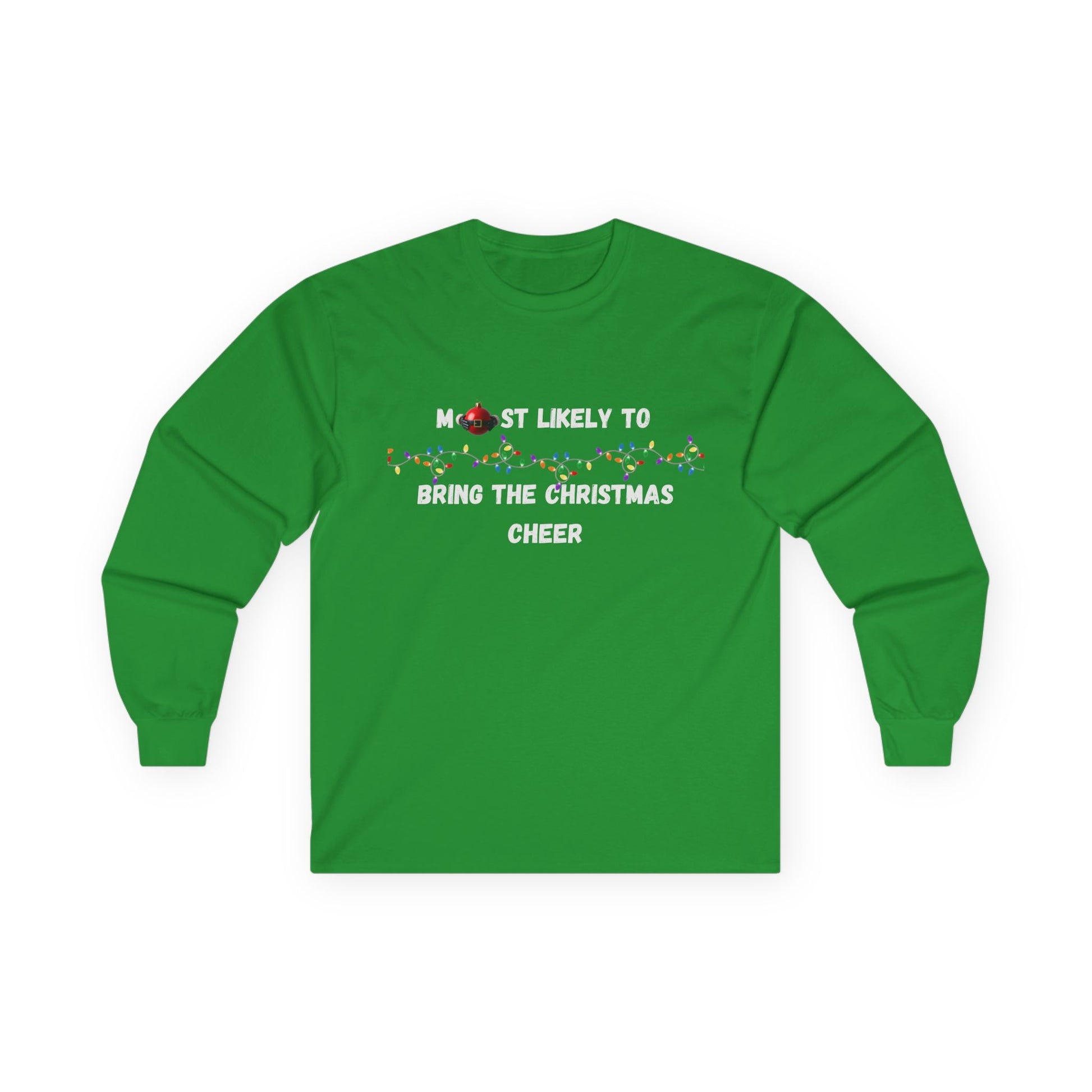 Spread joy everywhere you go with this “Most Likely To Christmas Spirit” apparel — a celebration of pure Christmas spirit! From decorating trees to singing carols, show off your love for the most wonderful time of the year. Perfect for those who believe the holiday magic never fades.